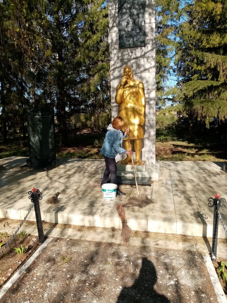 Была произведена уборка территории у памятников от бытового мусора, листвы и травы.