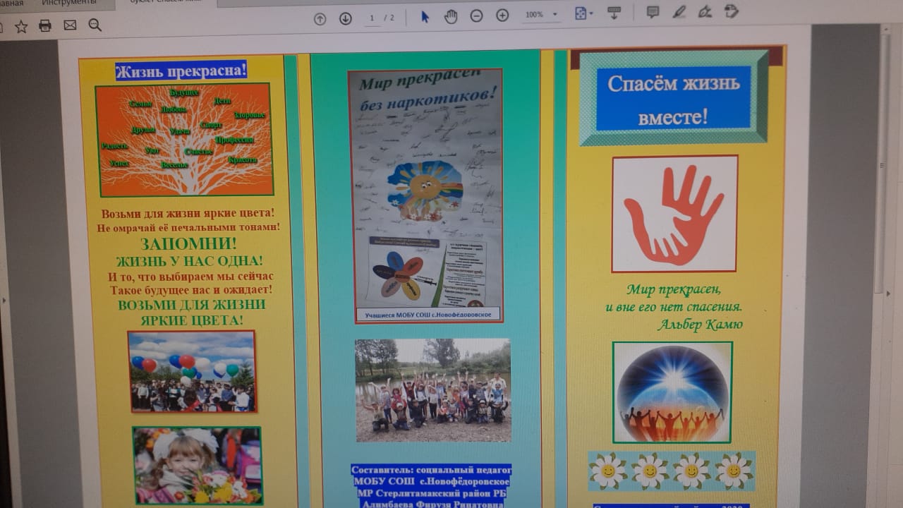 Учащиеся смотрели видеоролики, получили буклеты "Я люблю тебя, жизнь!" и "Спасём жизнь вместе", провели акцию "Мир прекрасен без наркотиков!"