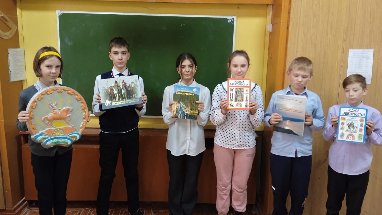 Для учащихся были проведены познавательные программы "Мой край родной-Башкортостан", конкурс рисунков, викторины. В ходе мероприятия ребята познакомились с символами республики Башкортостан, увидели башкирские танцы,а также услышали зажигательную игру на башкирском национальном инструменте -курае, в в исполнении учащегося 6 класса Туйгильдина Румира.