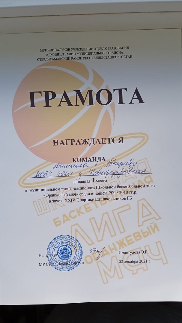 Муниципальный этап чемпионата Школьной баскетбольной лиги "Оранжевый мяч" среди юношей и девочек 2009-2010 гг.р. в зачет XXIV Спартакиады школьников РБ.