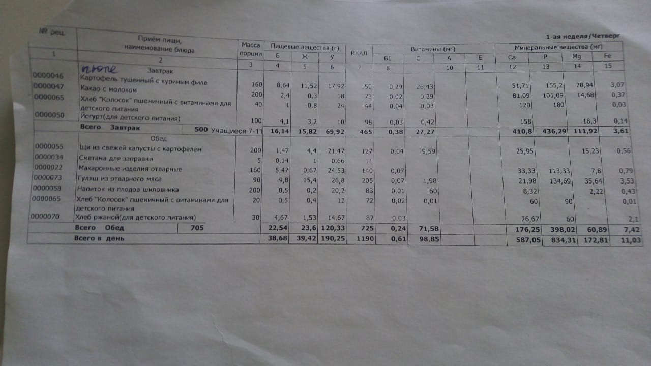 Ежедневное меню филиала школы